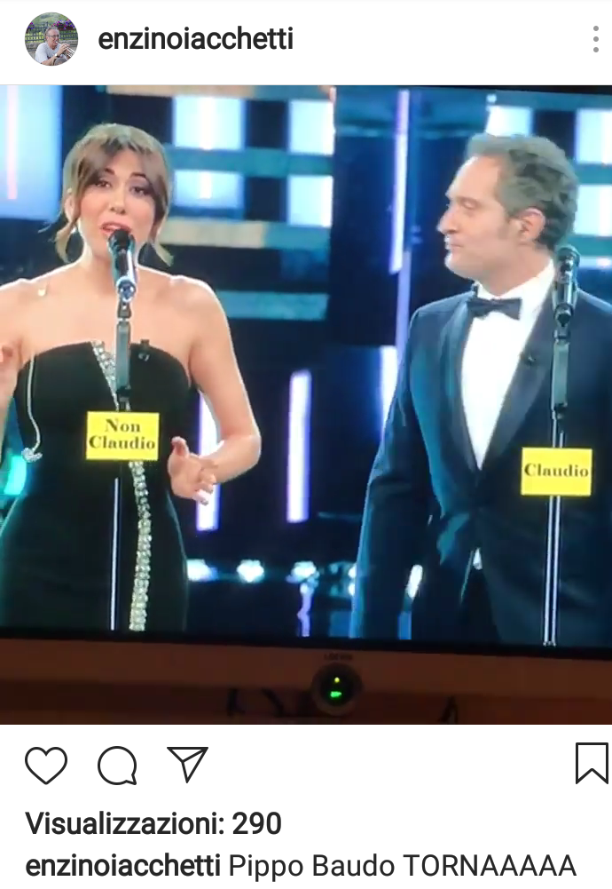 Non a tutti è piaciuta la prima serata del Festival, e non ci riferiamo all’auditel in calo (solo il 3% in meno rispetto al 2018, peccato leggere da qualche parte di flop solo perché non sono ascolti in crescita). Enzo Iacchetti, che come ci aveva detto in una intervista un mese fa è un grande appassionato di Sanremo, tanto che da sempre prova a parteciparvi ma senza essere preso in considerazione, ieri sera non ha per nulla apprezzato l’omaggio al Quartetto Cetra e ai 70 anni di Nella vecchia fattoria, momento senza dubbio più basso del debutto festivaliero, per quanto fosse al tempo stesso doveroso ricordare Savona e compagni. Magari non con la battuta “Sì é fatta una cetra”, degna di un repertorio da scuola media. Enzino su Instagram ha addirittura invocato il ritorno di Pippo Baudo, storico nemico di Striscia la notizia negli anni d’oro di SuperPippo, a cui Iacchetti e soci non davano tregua.