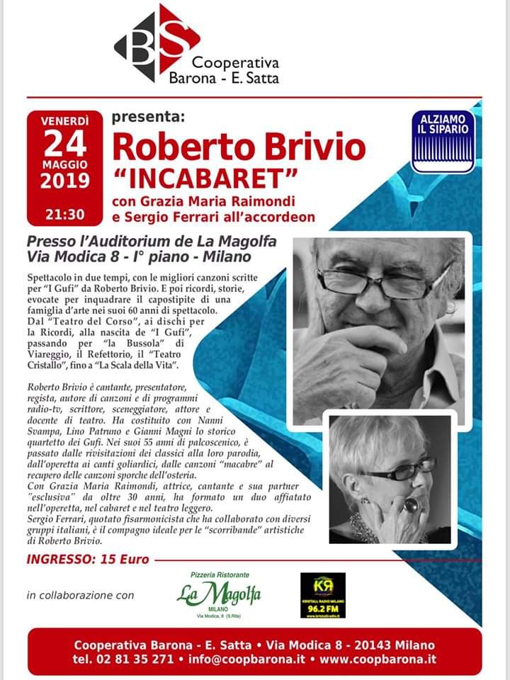 Ha dato vita al cabaret in Italia con tre compagni di vita straordinari, è tutt’oggi imitatissimo da tanti anche se nessuno lo dichiara apertamente, è uno dei pochissimi milanesi doc rimasti che la città meneghina deve conservare sotto chiave per il suo prezioso campanilismo con cui canta e diverte ancora dopo tanti anni con canti popolari, barzellette e comicità macabra. Oggi, ospite di TeatroeMusicaNews, un altro eccezionale pezzo di storia del teatro e della musica: Roberto Brivio.