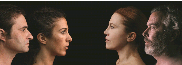 I quattro attori/personaggi si muoveranno in uno spazio grande e libero, senza confini e strutture teatrali che lo delimitano. Non ci sono mura, non ci sono soffitti. Non ci sono oggetti, non si sfiora mai il teatro borghese: gli unici strumenti di rappresentazione sono il corpo e la voce degli attori, impegnati in una performance fisica, che avranno a che fare con strutture modulari, fondali illuminati, luci, ombre, fotografie, video e una forte drammaturgia sonora.