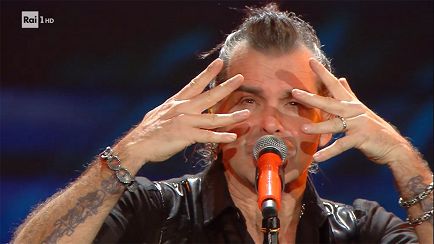 Tra i tanti momenti indimenticabili della carriera di Frizzi c’è sicuramente la sua imitazione di Piero Pelù a Tale e quale show. È proprio il cantante toscano, guarda un po’ il destino, ad aprire (e accendere anche musicalmente) la serata dei Big con il suo esordio sanremese che arriva solo alle 22.02, dopo il secondo stacco pubblicitario. Lo stile inconfondibile lo identifica come il rocker più rappresentativo di questo Festival: Gigante sarà l’occasione per uno straordinario rilancio, e rimane subito nelle orecchie col suo ritornello.