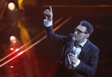 Marco Sentieri ha uno dei brani più significativi, parlando di bullismo. Meriterebbe di vincere tanto quanto Tecla, la sedicenne che parla di violenza sulle donne. E ovviamente i due si devono sfidare subito tra loro. Leo Gassmann non è perfetto nell’esecuzione un po’ esagerata e sguaiata, ma la canzone è bella e lui ha un cognome. Gli basta per battere il favorito Fasma. Restano quindi Gassman contro Tecla: parte un televoto flash degno dei regolamenti inventati all’ultimo da Signorini & co, che riduce la gara delle Nuove Proposte a un reality. Un quarto d’ora di attesa annunciato, inframezzato dalla pubblicità e da Fiorello che fa lo show vestendo con la maschera del Coniglio Carlucci de Il cantante mascherato. Tolta la maschera, ha ancora la parrucca di Maria De Filippi. Ancora con le battute sugli ismi, niente di nuovo ormai, eppure fa ridere e rilassa. Fiorello é unico quando fa Fiorello, capace come nessun altro, nonostante i tentativi di imitazione, di cantare Montagne verdi sulla musica di Generale. Quindi la proclamazione: con il 52% di voti, Leo Gassmann vince tra le Nuove Proposte come annunciato, sebbene alla vigilia del Festival sembrasse fin troppo scontata la sua vittoria. Era dato a 10 dalla Snai.