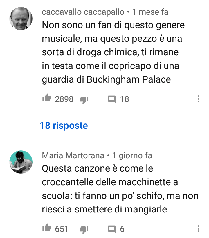 Ma sotto al video ufficiale (al momento c’è solo quello lyric) su You Tube, si è scatenata una competizione: quella del commento più divertente che descriva l’approccio alla canzone. Ve ne sono alcuni davvero simpatici, e tutti a modo loro rendono perfettamente l’idea della percezione di Bando. C’è chi chiama in causa le croccantelle delle macchinette, che a nessuno piacciono ma si mangiano volentieri, chi ne trova uno stimolo persino per il gatto che con la canzone diventerebbe già uno del quartiere. Tutti convergono sulla genialità di questa operazione assolutamente commerciale nel suo apparente nonsense. Al primo ascolto sembra un’idiozia, il ritmo però (in pieno stile Albertino) è talmente incalzante da fare ripetere a tutti le parole del testo. Forse tutta un’idiozia non è.