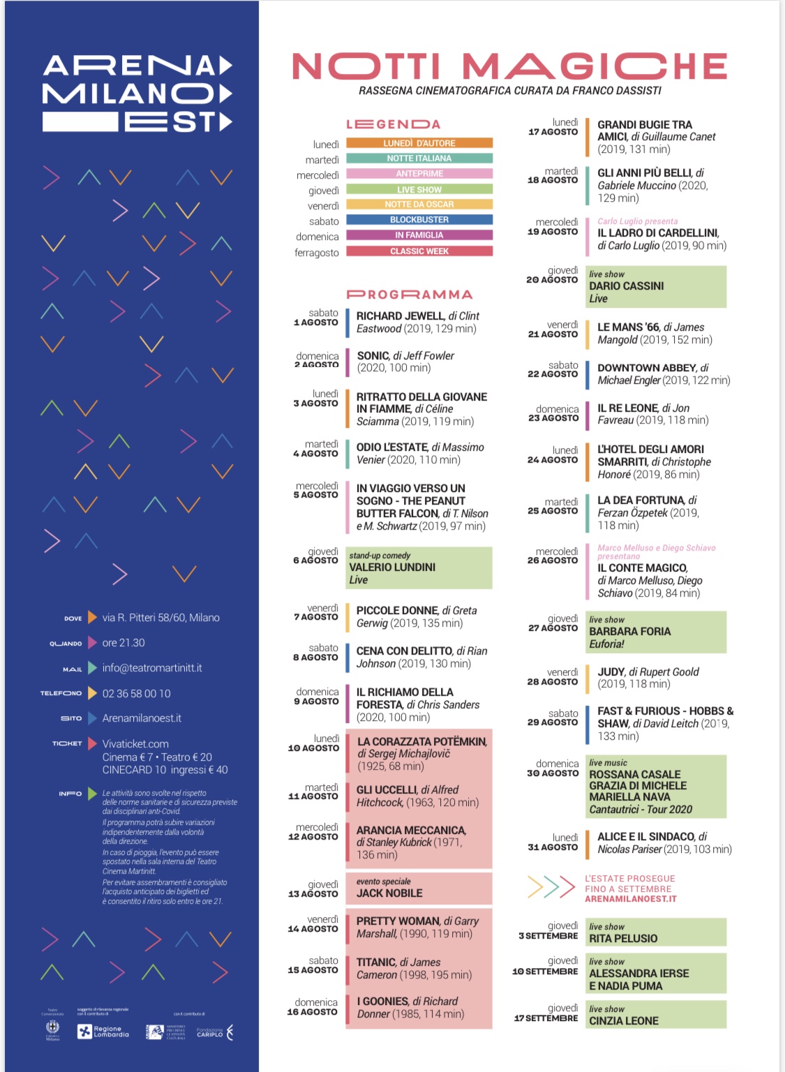 Ecco qua sotto il programma completo del mese di agosto delle Notti magiche curate da Franco Dassisti.