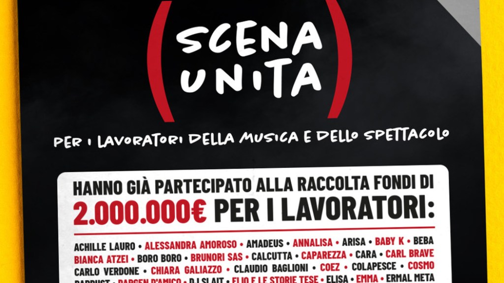Continuano a crescere le adesioni a SCENA UNITA, l’atto collettivo promosso da Fedez e patrocinato da Mibact con cui gli artisti raccolgono fondi a sostegno di chi lavora per lo spettacolo riversando da qualche mese in gravi condizioni economiche a causa dell’emergenza Covid-19