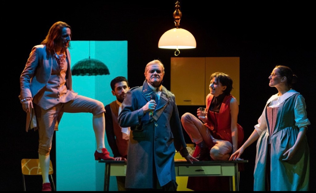 Sono ormai due anni che quest’avventura va avanti nelle platee vuote, mentre alle trame dell’opera si intrecciano, giocoforza, quelle della vita privata e quotidiana di ognuno: c’è Gianni, il giovane attore e assistente alla regia che si trova a dover risolvere le situazioni più disparate, inventandosi ora come trovarobe, ora come macchinista, ora come attore dai mille ruoli. Ci sono poi Eleonora e Beatrice, l’una attrice sempre relegata in ruoli minori e l’altra giovane promessa amata da tutti, ma soprattutto da Leonardo, attore di fiction e cavallo di punta della compagnia, dedito al corteggiamento sfrenato e agli eccessi in genere. A completare il panorama si trovano Ambrogio, nominato amministratore di compagnia in omaggio alla sua veneranda età e alla sua carriera, di cui non manca mai di ricordare i fasti: strenuo difensore della filologia e della classicità, lo si trova spesso a combattere contro la minima spesa e la minima libertà sul testo e a scontrarsi con Carlo, regista che attraverso le canzoni vorrebbe portare innovazione e contemporaneità in un Teatro che altrimenti lui definisce “vecchio e paludato”.
