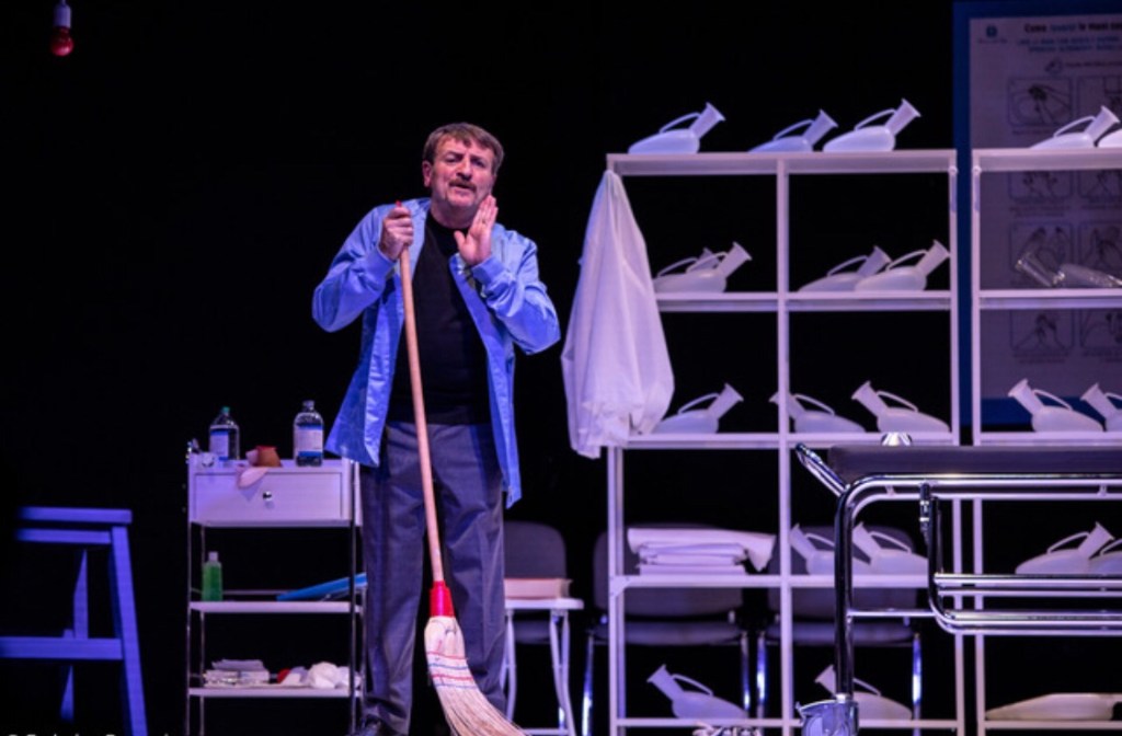 In ospedale si entra solo per tre motivi: se uno è ammalato, se si va a trovare un ammalato, oppure, se sei particolarmente sfortunato, se ci devi lavorare. Il protagonista di questo monologo aveva immaginato per sé un avvenire radioso come calciatore, come astronauta o avvocato di grido; ma la sorte è a volte sorprendente, talvolta bizzarra, e quasi sempre misteriosa, e così mentre sta per ricevere il pallone d’oro, aprendo gli occhi si ritrova nelle proprie mani una scopa di saggina.
