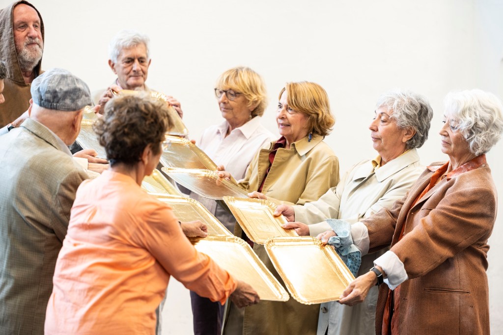 Tindaro Granata: “Serena insegna cosa significhi fare teatro in un certo modo. Il percorso è stato molto particolare, forte per tutti noi. Si tratta di una condivisione che stiamo facendo tra tutti noi, attraverso l’esperienza di 150 milanesi. Abbiamo sezionato la nostra città per studiarla . I gruppi hanno scritto drammaturgicamente a modo proprio una giornata media di una persona che frequenta questi luoghi. È ovviamente tutto molto simbolico: ci siamo messi sul palcoscenico del Carcano non per mostrare, ma per condividere queste esperienze. Dobbiamo essere testimoni di una voce. La nuova povertà di Milano è costituita da persone che prima della pandemia potevano essere i nostri vicini di casa, che oggi non possono pagare le bollette. Abbiamo scoperto cose importanti: andare a forzarci per creare la comunità non è così semplice. Tutti sappiamo che ci sono le mense per i poveri, ma andare a toccare questo con mano è un grande privilegio che ci ha dato questa esperienza”.