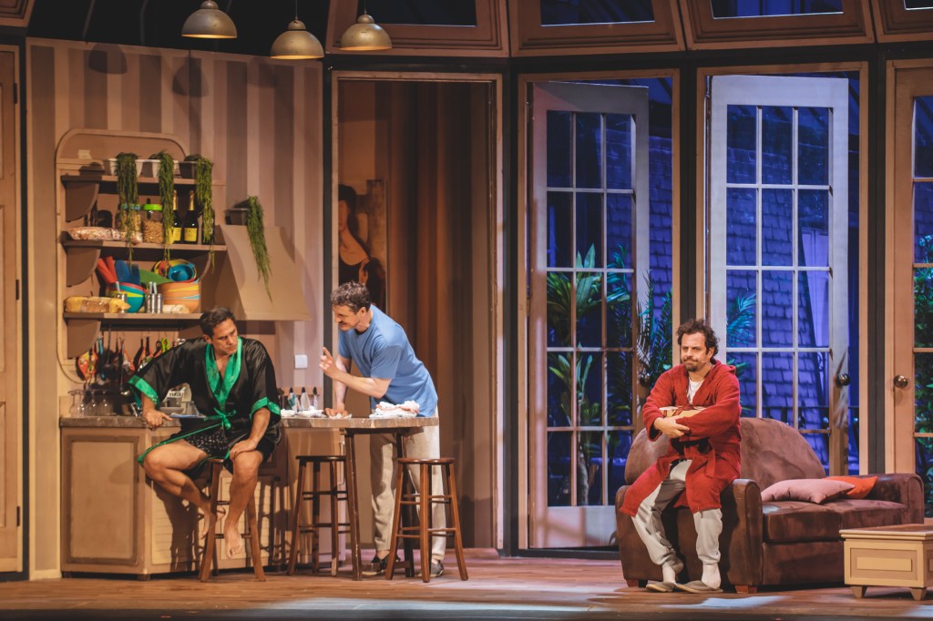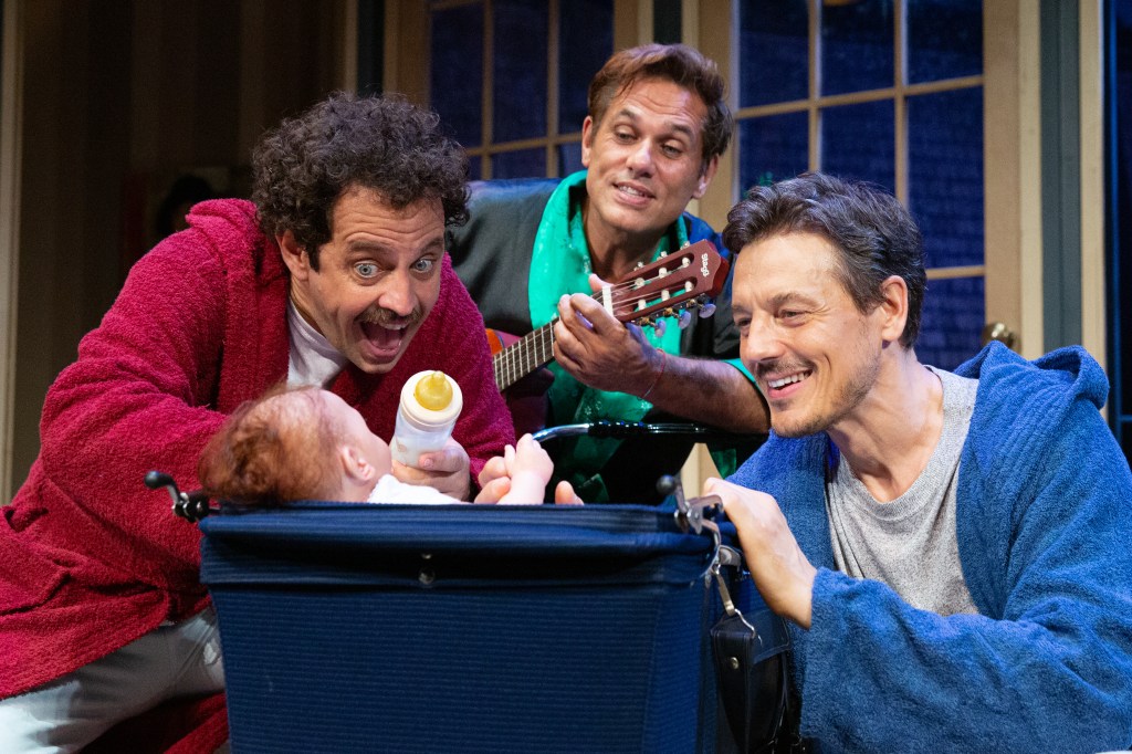 Una commedia molto spassosa e al tempo stesso piena di tenerezza, che appassiona un pubblico mai sazio di risate. Sono due ore nette di spettacolo (più la pausa), intervallate da vari momenti di buio per consentire i cambi scena: in questo modo il ritmo rimane sempre molto acceso, dando luogo ogni volta a degli sketch più o meno lunghi. La colonna sonora, tutta di grandi successi francesi (ma anche quella Ping Pong di Plastic Bertrand nata proprio in Italia), è la giusta sintesi di un perfetto mix tra dolcezza e divertimento. Al debutto, il Manzoni si riempie notevolmente malgrado la sfida di Champions’. Il merito è anche di un testo già noto al cinema e di una morale che senz’altro si ripropone in una maniera più che mai attuale: mentre ci domandiamo se un bambino possa avere due padri, ecco che scopriamo in quale modo ve ne possano essere addirittura tre.