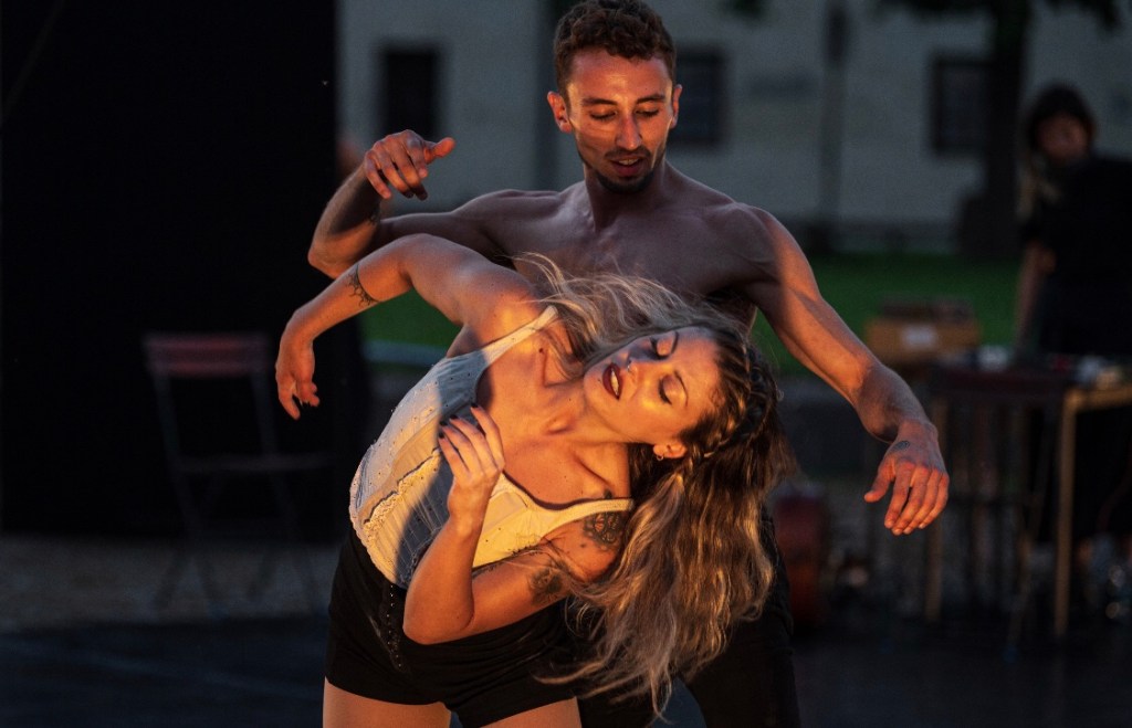 Pochi ed emblematici oggetti di scena e linee geometriche emergono quali elementi concreti e plastici, che si stagliano a contrappunto di questa atmosfera, dove i veri protagonisti sono il tempo e la distanza, la lotta, l’incontro e il volo. A scandire il ritmo delle scene, l’alternanza dei brani tratti dal balletto di Prokofiev, per riscoprirne una nuova scrittura e un finale sospeso. La musica eseguita dal violoncello classico, processato dal vivo da Bea Zanin, coinvolge nella composizione fisica e sonora anche i performer. Accanto alla musicista, gli artisti Elisa Mutto, Alexandre Duarte, Federico Ceragioli, Vladimir Ježić, Michelangelo Merlanti e Ivan Ieri, sotto la direzione della coreografa e regista Caterina Mochi Sismondi.