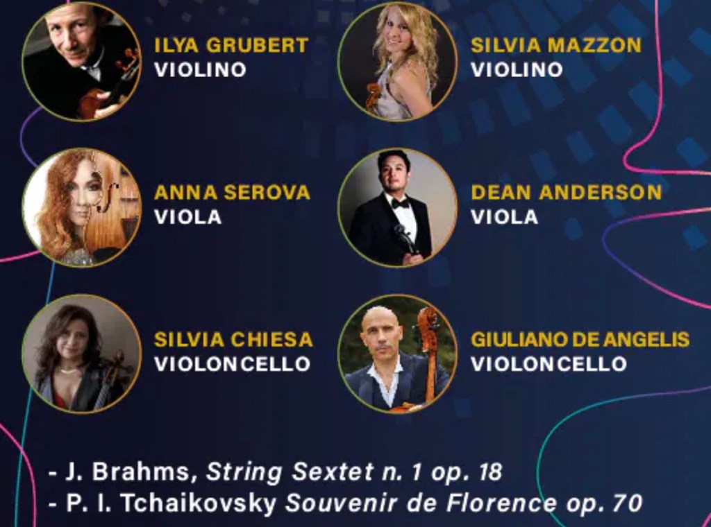 L’evento di apertura di lunedì 15 maggio, #RomanticStories, vedrà protagonista un sestetto stellare composto da musicisti del calibro di Ilya Grubert e Silvia Mazzon (violini), Anna Serova e Dean Anderson (viole), Silvia Chiesa e Giuliano De Angelis (violoncelli). In programma il Sestetto n. 1 op. 18 di Johannes Brahms e il Souvenir de Florence op. 70 di Piotr Ilic Tchaikovsky.