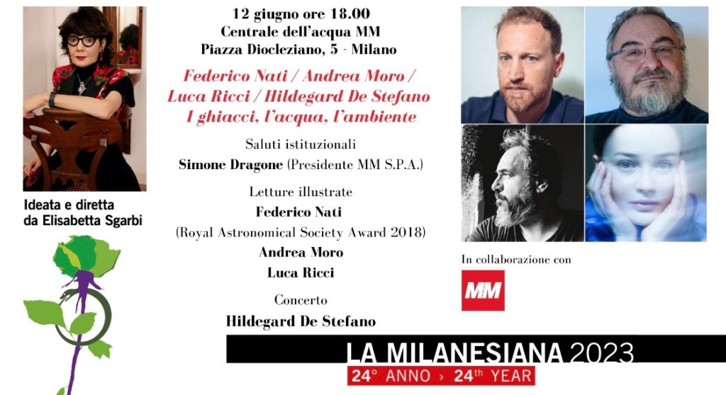 LA MILANESIANA, ideata e diretta da Elisabetta Sgarbi, arriva il 12 giugno alla Centrale dell’Acqua di Milano – MM Spa con l’appuntamento “I ghiacci, l’acqua, l’ambiente”.