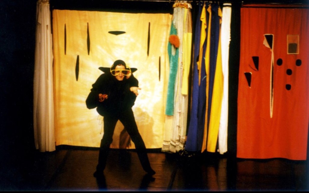 Questi personaggi parlano un dialetto frastagliato e tronco, si muovono nervosetti, fanno capolino dalle fessure e dai buchi dei vasi di stoffa variopinti, i menti e le capoccette pensanti spuntano e si alternano dalle sete, dalle reti e dalla juta dando il senso di quartieri popolari affollati dove il gioco e la fantasia alzano il vessillo dell’incomprensione media. Il quadro di scena è la scenografia mista al costume, ogni storia ha il suo habitat, ogni personaggio un corpetto diverso e mortificato.