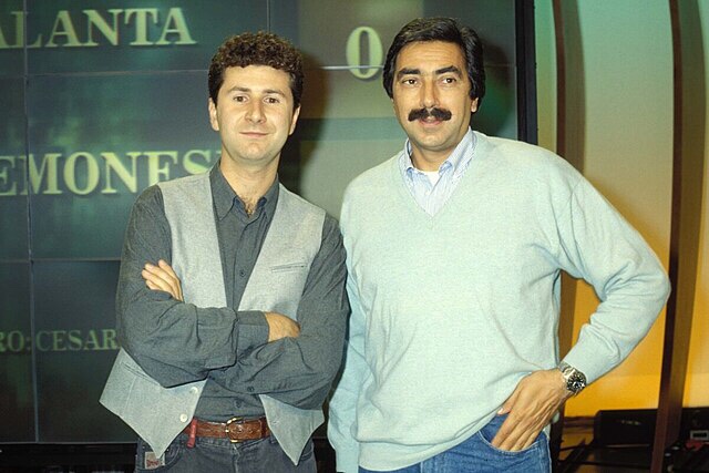 L’esperimento era ambizioso anche se, guardandolo con gli occhi di oggi, questo può far sorridere. All’epoca, però, in pochi avevano l’abbonamento a Telepiù, quindi era interessante il fatto che noi potessimo mostrare alcune immagini dagli spalti e dal campo a palla ferma o durante le esultanze dei giocatori. E poi facevamo appunto vedere sullo schermo i volti dei radiocronisti, fino a quel momento noti solo per nome e per voce, a parte Sandro Ciotti che era già famoso anche televisivamente. Apparivano su un tabellone con una particolare tecnica che li mostrava a velocità rallentata attraverso il satellite. L’idea era quella di far capire che non ci fosse molta differenza tra le emozioni raccontate da chi guarda una partita e quelle di chi la racconta.