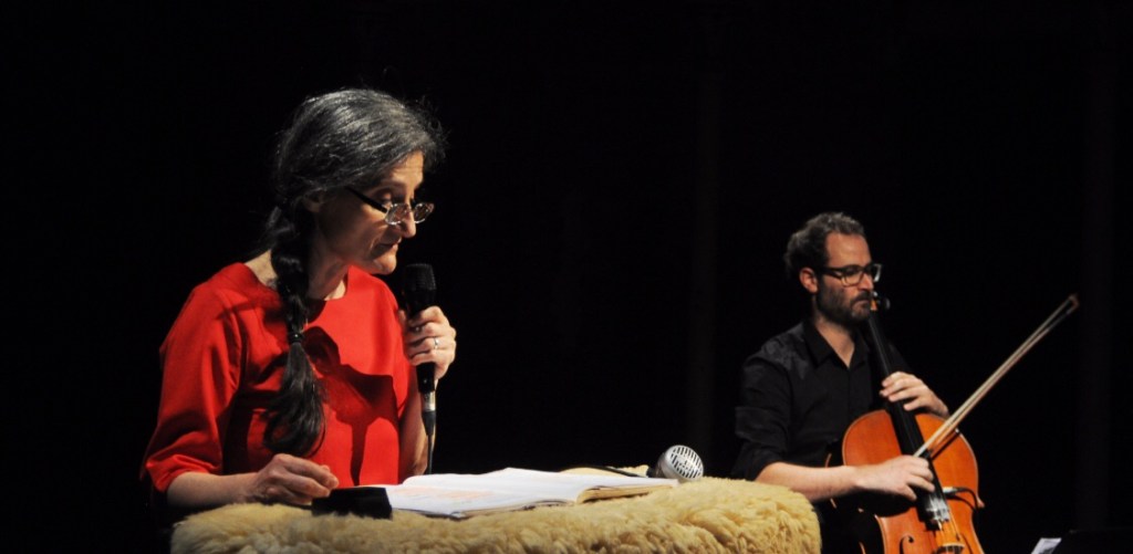 “Dal 2015 – scrive Chiara Guidi – svolgiamo esercizi di composizione sulle parole di Dante e, per ogni canto delle tre cantiche, ricerchiamo ogni volta un’architettura che possa manifestare il passaggio di una presenza: un corpo sonoro in transito sulle parole della Divina Commedia. Gli esercizi hanno come scopo la composizione di una partitura che dia valore e celebri l’unione inestricabile di Voce e Violoncello. Lì, sul pentagramma, con disegni tracciamo il suono della laringe umana in stretta relazione con gli endecasillabi e con la notazione musicale del violoncello per dare vita a un’unica forma che, come una linea flessuosa non visibile, ci indichi la chiave di tutto. La scrittura compositiva diventa per noi lo schizzo di un asse generatore che attende, attraverso la nostra interpretazione, di dare forma a una forma che si forma. Tracciamo segni sul cammino di Dante e quei segni diventano il nostro cammino. Per ogni canto scegliamo la lunghezza delle pause, le riprese, le cesure, le emozioni dei tracolli e delle risalite guidati da un sentimento di immagine che, passo dopo passo, ci guida nella composizione finché, giunti al termine del canto, si ricomincia a camminare in un altro spazio. Fino ad oggi abbiamo composto: dell’Inferno i Canti 1, 2, 3, 5, 6, 7, 8, 12, 13, 17, 18, 19, 26, 33, 34; del Purgatorio i canti 1, 2, 5, 10,15, 26; del Paradiso il primo e il secondo Canto. È un processo lento e costante. Nel tempo vogliamo attraversare l’intera opera”.
