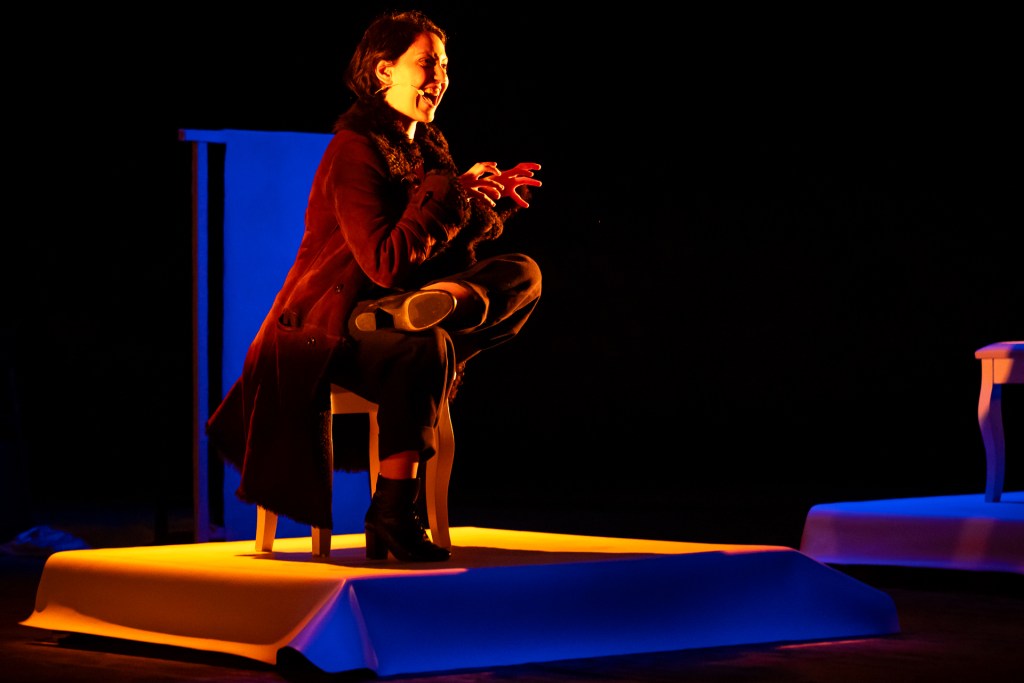 In scena, Serena Balivo dà corpo e voce alle due donne protagoniste della storia e accanto a lei appare, in uno scenario onirico e agita da Erica Galante, la figura muta dell’uomo al centro del triangolo amoroso.