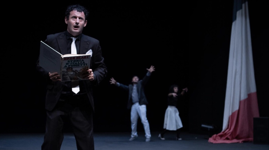 Elvira Frosini e Daniele Timpano, affiancati in scena da Marco Cavalcoli, con la loro scrittura affilata e spietatamente ironica, scandagliano l’apparato culturale occidentale, per arrivare a smascherare tutte le sue retoriche e i suoi miti fondativi. Passato e presente, storia francese e storia italiana, modernità e postmodernità si sovrappongono in questo lavoro vincitore della Menzione Speciale “Franco Quadri” nell’ambito del Premio Riccione 2019 e del Premio Ubu 2022 come Miglior nuovo testo italiano, all’interno di un percorso volto a mettere in crisi le nostre vite “democratiche” e l’immaginario legato al concetto di rivoluzione.