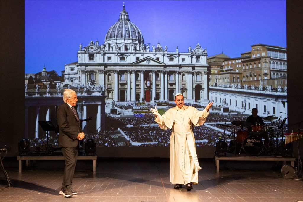 Ad accompagnare Lopez e Solenghi una grande band dal vivo (la Jazz Company diretta dal Maestro Comeglio), che rende tutto più emozionante e più vicino al varietà che amiamo. Quel varietà che i due attori (entrambi esordienti al Teatro Manzoni in momenti diversi negli anni ‘70) hanno fatto conoscere al grande pubblico televisivo insieme alla Marchesini. A proposito di Anna, Lopez in conferenza stampa ha raccontato un aneddoto che merita di essere rievocato. Si creava uno sketch improvvisato senza pubblico: Lopez chiedeva “Anna Marchesini, come è arrivata al successo?”, e lei: “Lodata, lodata, lodata tantissimo”. Questo era il Trio, questi sono ancora loro (perché l’anima di Anna è assai presente sul palcoscenico). Ci sarà un motivo se si ride di gusto come allora: questa comicità immortale vale per tutte le epoche.