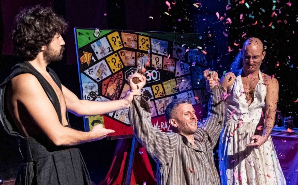 Lo spettacolo di Generazione Disagio, Dopodiché stasera mi butto, primo lavoro teatrale del collettivo, è un cinico e spassoso gioco dell’oca che mira all’annullamento. Nei prossimi giorni, a dieci anni dal debutto, arriva al Teatro Bellini di Napoli dal 9 al 14 gennaio, quindi al Teatro Gerolamo di Milano il 16 e il 17 gennaio.