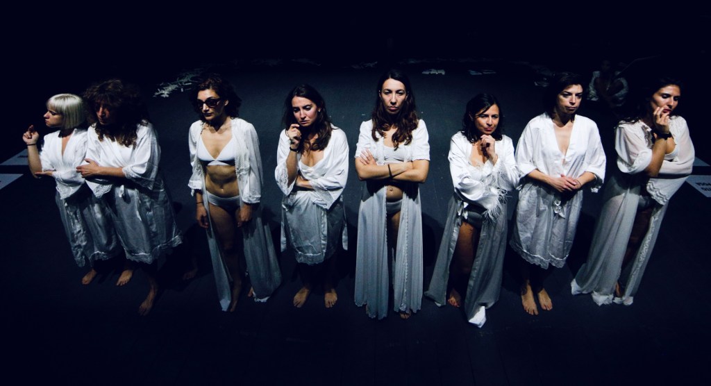 In scena l’autrice Giulia Aleandri con Elvira Berarducci, Smeralda Capizzi, Benedetta Cassio, Livia De Luca, Chantal Gori, Giulia Pietrozzini, Silvia Gallerano con il contributo di Serena Dibiase e la voce di Greta Marzano.