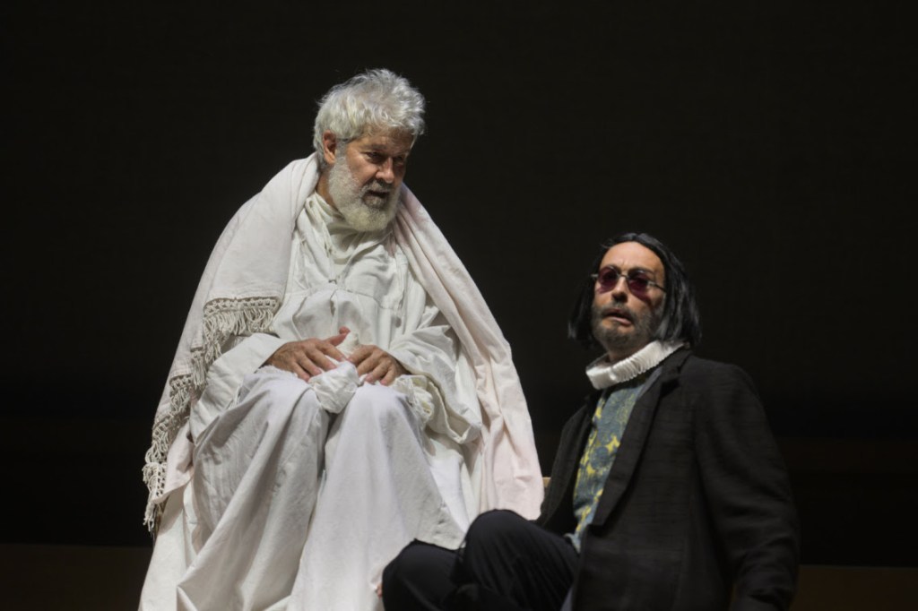 In questo adattamento l’eroe e antieroe “resuscita” a Windsor esprimendo, gigione e irridente, la natura del suo personaggio: un’arroganza aristocratica, con un sangue plebeo, popolaresco, che muta dalla rabbia al sarcasmo ma rimane disarmante, quasi patetico, perché non conosce, o non sa, darsi le regole e la consapevolezza dell’età che “indossa”.