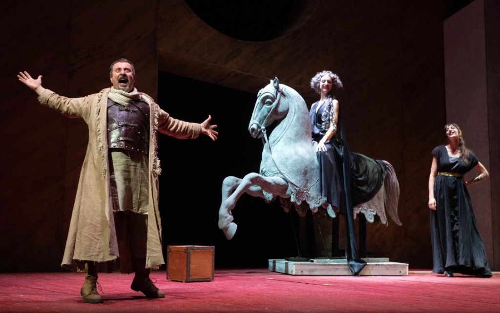 Per Antonio conoscere Cleopatra – un “Serpente del vecchio Nilo” che siede in trono rivestita del manto di Iside – è ciò che dà un senso al viaggio della vita. Quanto a Cleopatra, scrive Nadia Fusini, “è la sacerdotessa di un’azione drammatica da cui sgorga ancora e di nuovo l’antica domanda, che già ossessionava Zeus e Era: in amore chi gode di più? l’uomo o la donna? […] e chi ama di più, gode forse di meno?