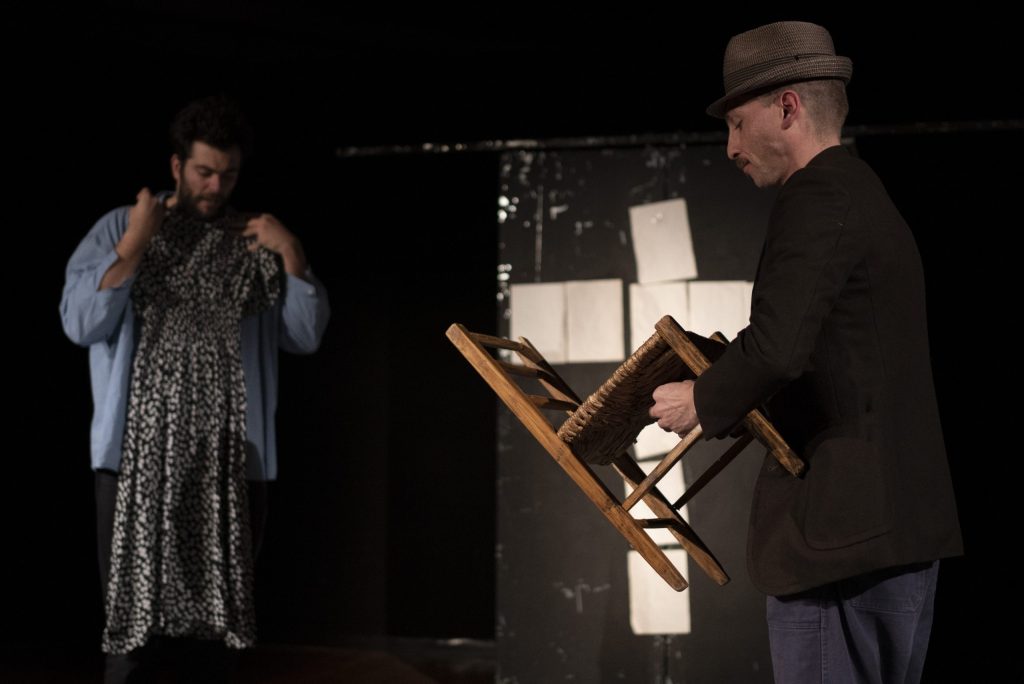Pochi colori in scena e pochi oggetti per raccontare lo spaccato di vita dei due fratelli, Giovanni e Paolo, divisi e segnati da un passato che li ha condizionati profondamente. Le loro giornate “grigie” trascorrono tra litigi e sorrisi che inevitabilmente li fanno tornare in maniera ossessiva al loro passato, ai loro sfocati ricordi di bambini, alla presenza soffocante di un padre e alla colpa grave di uno dei due. Tale colpa forse è origine e causa di una famiglia in disfacimento e ciò ne determinerà inevitabilmente il loro destino. Le parole e i gesti vivono all’interno di una cornice che è casa, lavoro, strada – finanche il cimitero – ma non è fino in fondo nessuno di questi luoghi.