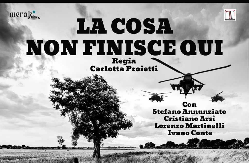 Va in scena dal 14 al 17 marzo, al Teatro Trastevere di Roma, lo spettacolo La cosa non finisce qui, di Giacomo Sette, per la regia di Carlotta Proietti. Protagonisti Stefano Annunziato, Cristiano Arsì, Lorenzo Martinelli, Ivano Conte.