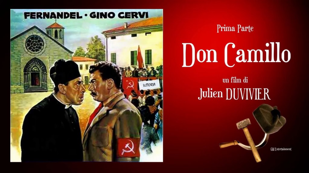E’ proprio con l’elezione del comunista Peppone a sindaco di Brescello che inizia infatti il primo capitolo di Don Camillo. Il parroco, per boicottare il comizio del primo cittadino in piazza, suona le campane: è solo il primo dei tanti dispetti che i due si faranno, non riuscendo a fare a meno l’uno dell’altro. Pochi giorni dopo, infatti, Peppone porta in chiesa il suo bambino appena nato perché sia battezzato col nome di Lenin. Davanti al rifiuto di Don Camillo (“Fatelo battezzare dai russi”), Peppone non si dà per vinto e solo una scazzottata tra i due nel campanile convincerà il sindaco a scegliere di chiamarlo Camillo anziché Lenin. A quel punto il parroco ammetterà: “Con un Camillo vicino, si può chiamare anche Lenin”. Le scritte “Peppone è un asino” in giro per il paese, ma persino l’incendio di un magazzino in cui i comunisti nascondono le armi per le loro rivolte proletarie, sono alcune delle iniziative con cui Don Camillo prova ad arginare, senza successo, l’operato del sindaco, che si rivela furbo ma non disonesto.