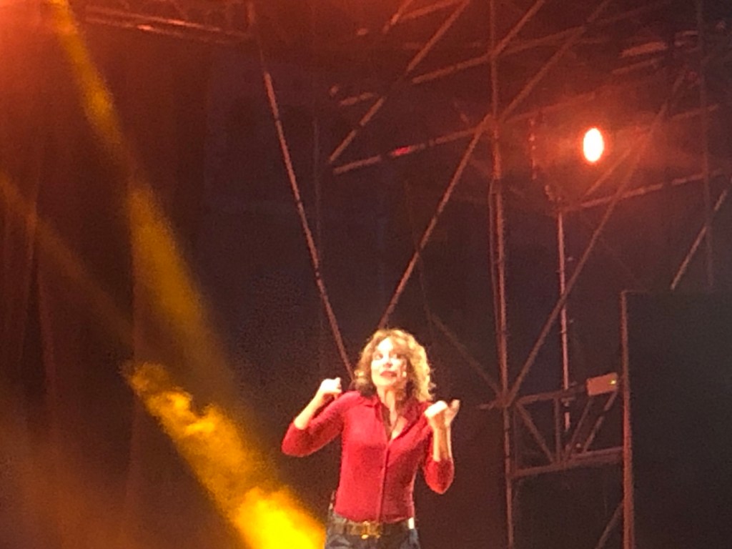 Dopo aver cominciato con mezz’ora spaccata di ritardo lo spettacolo senza nemmeno scusarsi col pubblico già spazientito (si limita a responsabilizzare il tecnico delle luci), si comprende subito che il rispetto non è centrale nella serata. Si arriverà ancora, dopo tanto tempo, a infangare in due passaggi persino Berlusconi (reo tra le altre cose di abusi di aeroporti): oltre che oltraggiosa diventa persino ripetitiva con se stessa, che nella sua carriera non ha mai potuto fare a meno di sfottere il Cavaliere. Almeno un tempo se la prendeva con un vivo: a sto punto diventa ossessione gratuita.