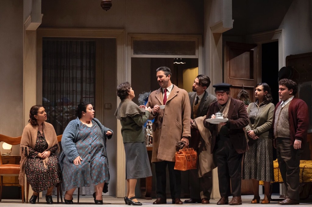 Alzi la mano chi, a Natale, non pranza con la persona estremamente legata alle tradizioni (argomenti e frasi comprese, irrimediabilmente le stesse da sempre) o chi non deve fare slalom tra le gaffes del parente che, non si sa come, riesce sempre a dire la cosa sbagliata nel momento meno indicato. Luca Cupiello incarna tutto ciò. Anche per questo Natale in Casa Cupiello è la vera tradizione teatrale (che funziona da ormai 93 anni) a cui non si può rinunciare: sarà la storia, sarà il calore della scenografia, ma in quella casa ci sono moralmente tutte le famiglie, a qualunque ceto sociale appartengano. Risate dall’inizio alla fine, con tempi e battute ripetute, che sul palcoscenico trovano un’esaltazione amplificata e divertentissima. Questa versione non cambia praticamente nulla dell’originale: quando un testo funziona, rimane eterno come lo sono i De Filippo. I tre atti (per onore della storia, va detto che un tempo erano due, perché la storia terminava con la sempre irresistibile scena di Luca, Tommaso e Pasqualino vestiti da re Magi) sono divisi da un sipario che crea brevi intervalli, in cui si intravede l’allestimento della scena. Scelta adeguata, perché Natale in casa Cupiello non può essere interrotto con un lungo intervallo che distruggerebbe il flusso di un divertimento crescente minuto dopo minuto mentre si conoscono a mano a mano i personaggi.