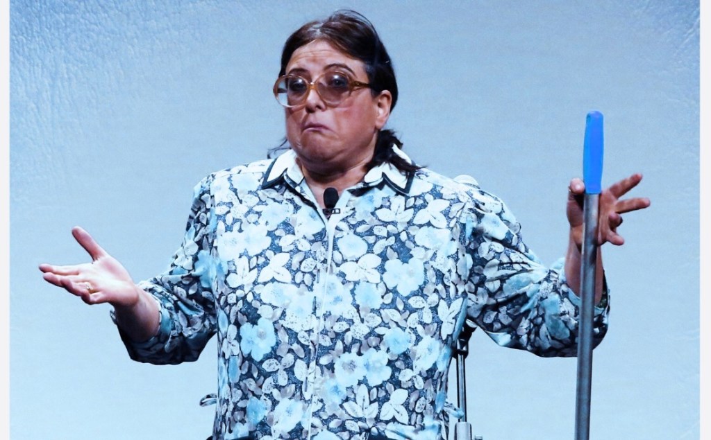 Poi sul palco restano solo un microfono e l’attrice.