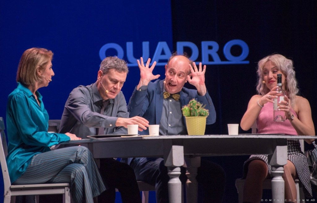 Sul palco Ale & Franz, accompagnati da Rossana Carretto e Raffaella Spina, artefici di un intreccio esplosivo di risate, colpi di scena e reazioni comiche a catena, in uno spettacolo che come sempre parla di noi, parte da noi e racconta di noi, come se fossimo davanti a uno specchio.