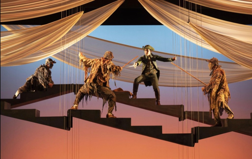 Ambientato in una Liguria “immaginaria”, a metà di un Settecento che prelude alla Rivoluzione Francese e che riverbera nei costumi dello spettacolo, «Il barone rampante – continua Frati –, regalandoci un personaggio che si muove in alto, sospeso sulle nostre teste, ci costringe a sollevare gli occhi dai dispositivi in cui siamo isolati, a uscire dalla gabbia delle nostre individualità. L’adolescente Cosimo, che incarna l’urgenza di migliorare il mondo intorno a sé, mi fa pensare ai giovani attivisti per l’ambiente dei giorni nostri, e a tutti coloro che hanno il coraggio di cambiare il proprio punto di vista e di impegnarsi per il bene comune».