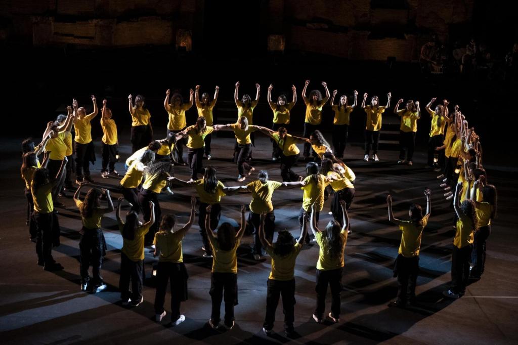 In scena con un coro di 80 adolescenti, Lisistrata trae linfa dalle invenzioni del commediografo così come dalle creazioni dei giovanissimi attori, che fanno propria la celebre vicenda intrecciando la battaglia pacifista alla fantasia di un mondo rovesciato: se gli uomini insistono a perpetuare la guerra, saranno le donne a “sciogliere gli eserciti”, con un paradossale sciopero del sesso.