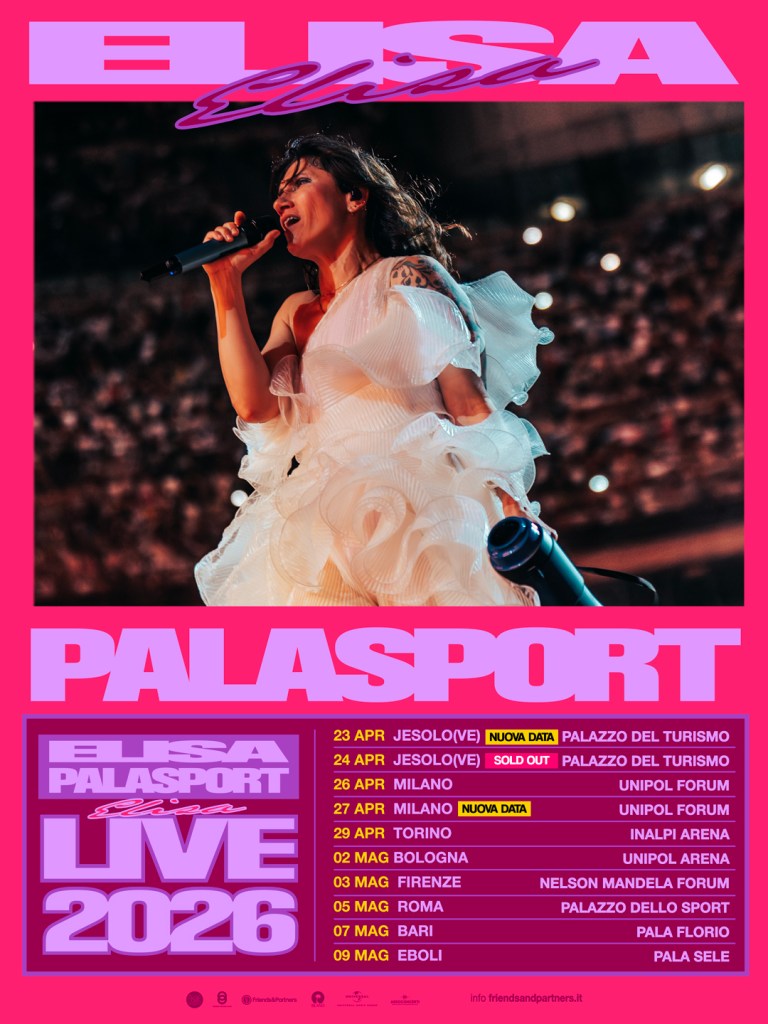 Le nuove date si aggiungono al tour “Elisa Palasport 2026”, prodotto e organizzato da Friends and Partners, che nella primavera del prossimo anno toccherà le principali città italiane. Una tournée attesissima, naturale prosecuzione del grande successo registrato nell’autunno 2025, che ha visto Elisa collezionare sold out e un’accoglienza entusiasta da parte del pubblico.