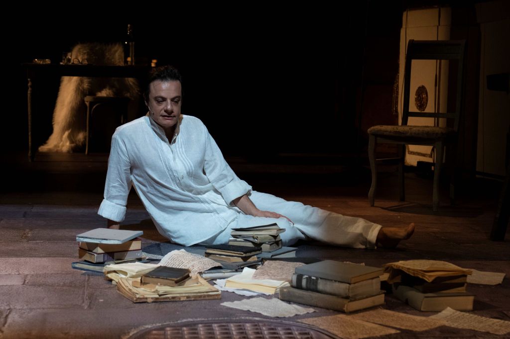 «Sono – continua il regista – agglutinazioni visionarie, sprazzi di vita ripercorsi con l’occhio e l’orecchio dello sciamano. Buchi, faglie, crepe di una memoria a brandelli, e solo a posteriori rammendata. Il diario di uno scrittore che odiava la realtà. Che alla realtà preferiva la vita fantasticata, la musica dell’invenzione e della rêverie. “Un libro che traduce”, scrive nella prefazione Enrico Fiore, “tutta la grazia e tutta la maledizione del teatro, costretto per sua natura a fingere la vita nel momento stesso in cui vive”. Sono partito da questo piccolo libro per immaginare uno spettacolo intorno al mondo interiore di Enzo, accostandomi delicatamente alla penombra della mente di un poeta che sta a Napoli come Kavafis sta ad Alessandria. Come scrisse Anna Maria Ortese a proposito di Elsa Morante, anche Enzo Moscato ha fatto un giuramento all’Invisibile. E questo più che un semplice spettacolo rischia di essere un appuntamento postumo con la sua voce indimenticabile».